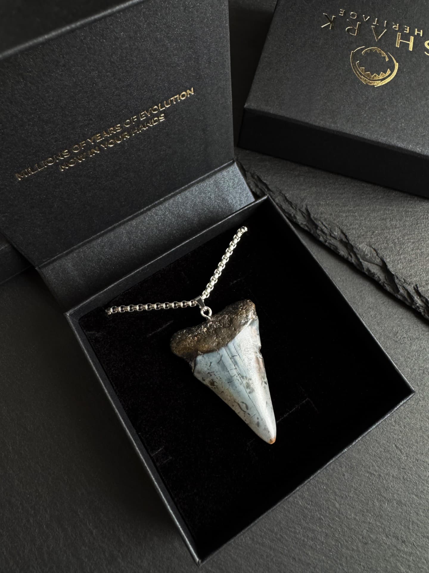 The necklace comes in elegant custom SHARK HERITAGE packaging, making it a great option for a thoughtful and unique gift. There is also a story card that elevates the whole unpacking experience.
